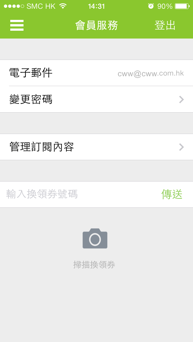 a. 到「會員服務」中,可見「電子郵件」所顯示電郵地址